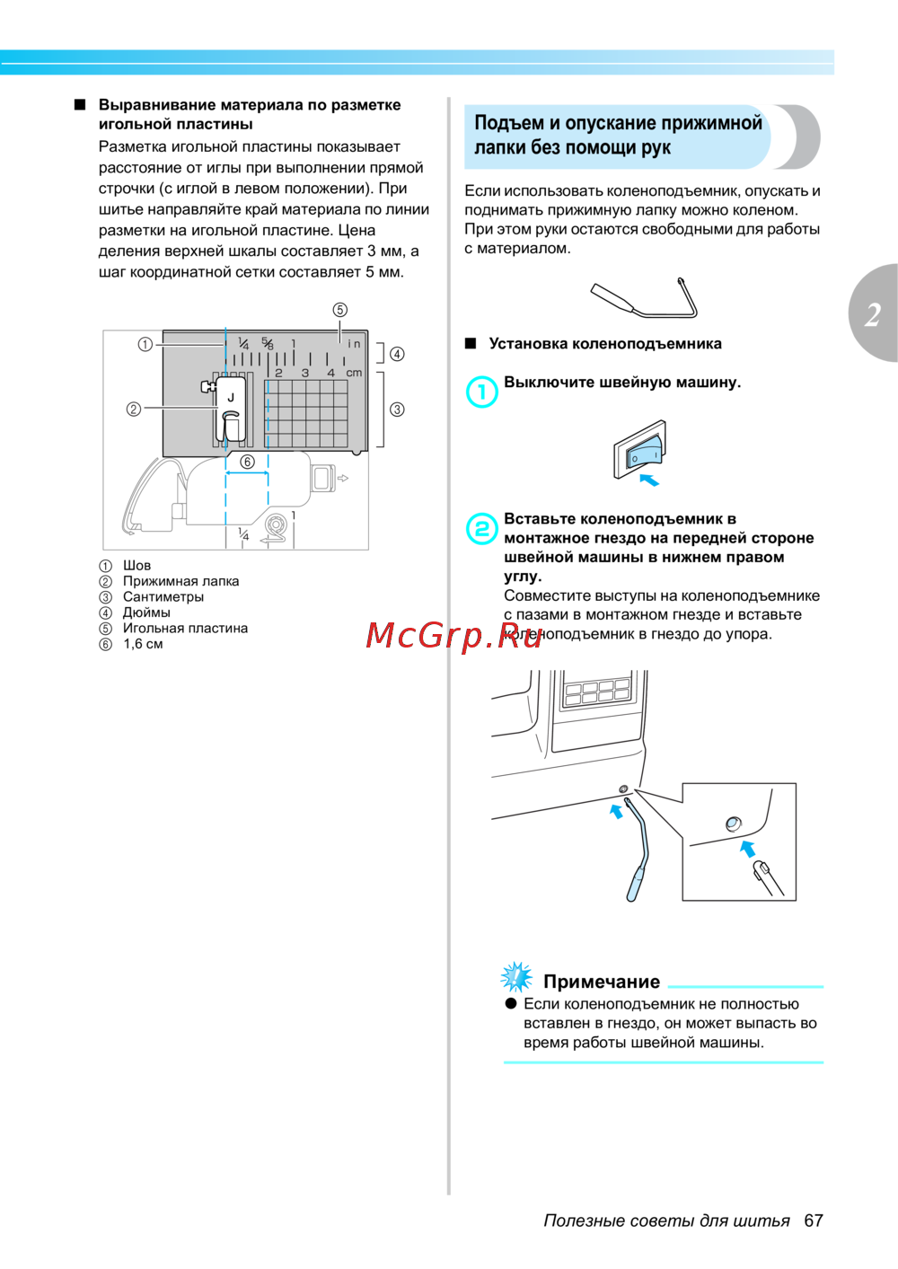 Brother INNOV-'IS NV-1250 — полезные советы по шитью: выравнивание и использование коленоподъемника [69/204]