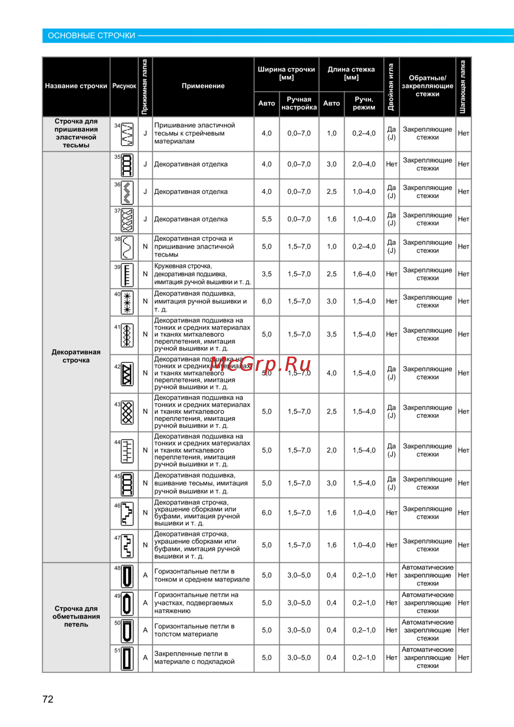 ![Brother INNOV-'IS NV-1250 [74/204] Основные строчк](/views2/1026119/page74/bg4a.png)