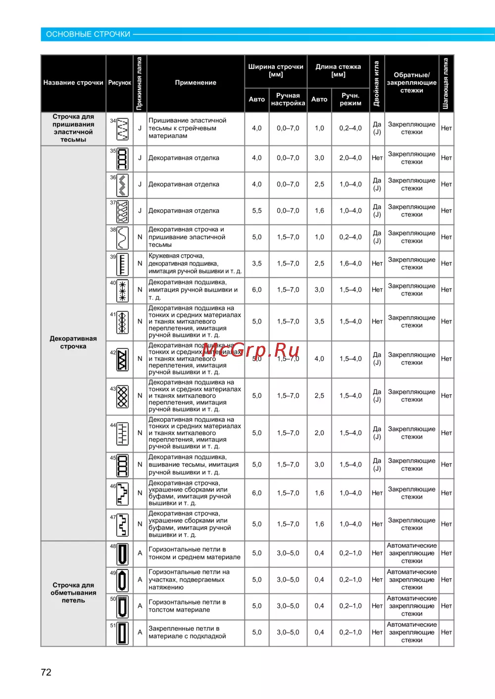 Brother INNOV-'IS NV-1250 [74/204] Основные строчк