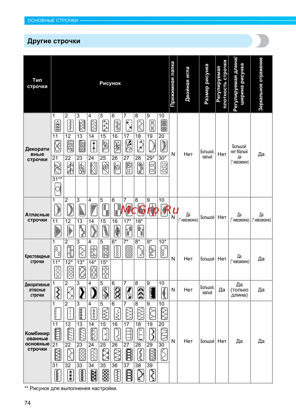 - Вышивание различных встроенных декоративных рисунков 28 p.9