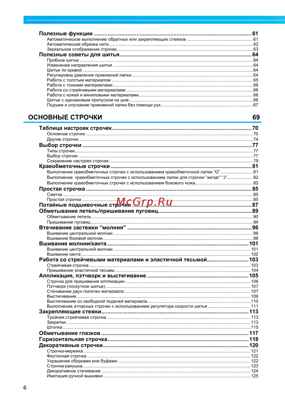 Строчка для пришивания аппликации ......................................................................................................106