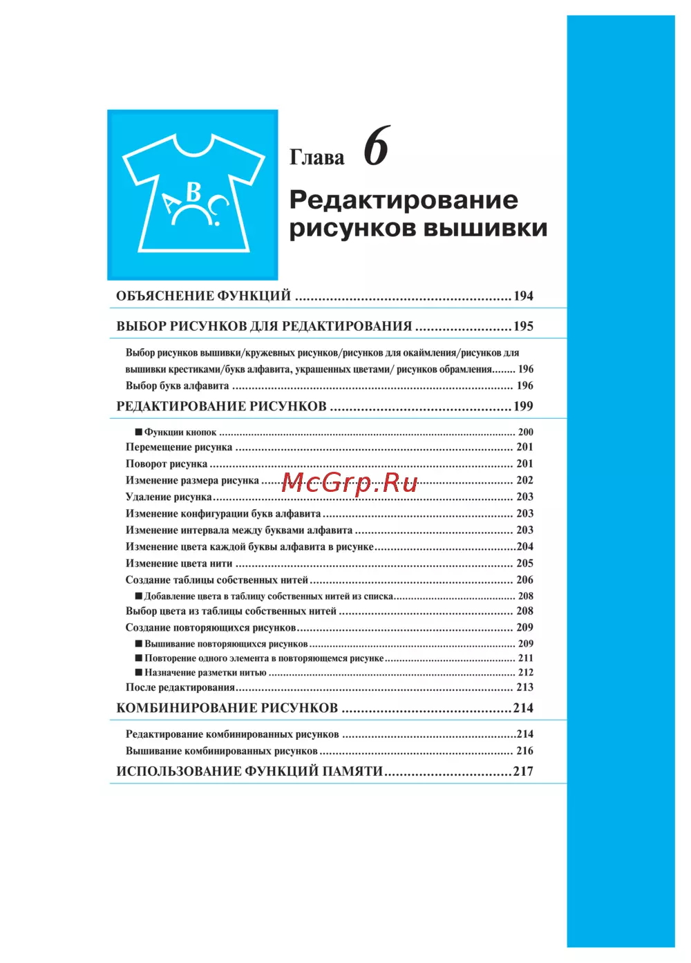 ■ Вышивание повторяющихся рисунков....................................................................... 209