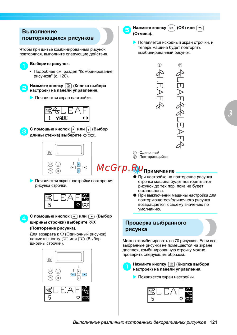 Узнайте, как настроить швейную машину для выполнения повторяющихся и одиночных декоративных рисунков. Пошаговая инструкция для легкого комбинирования узоров.
