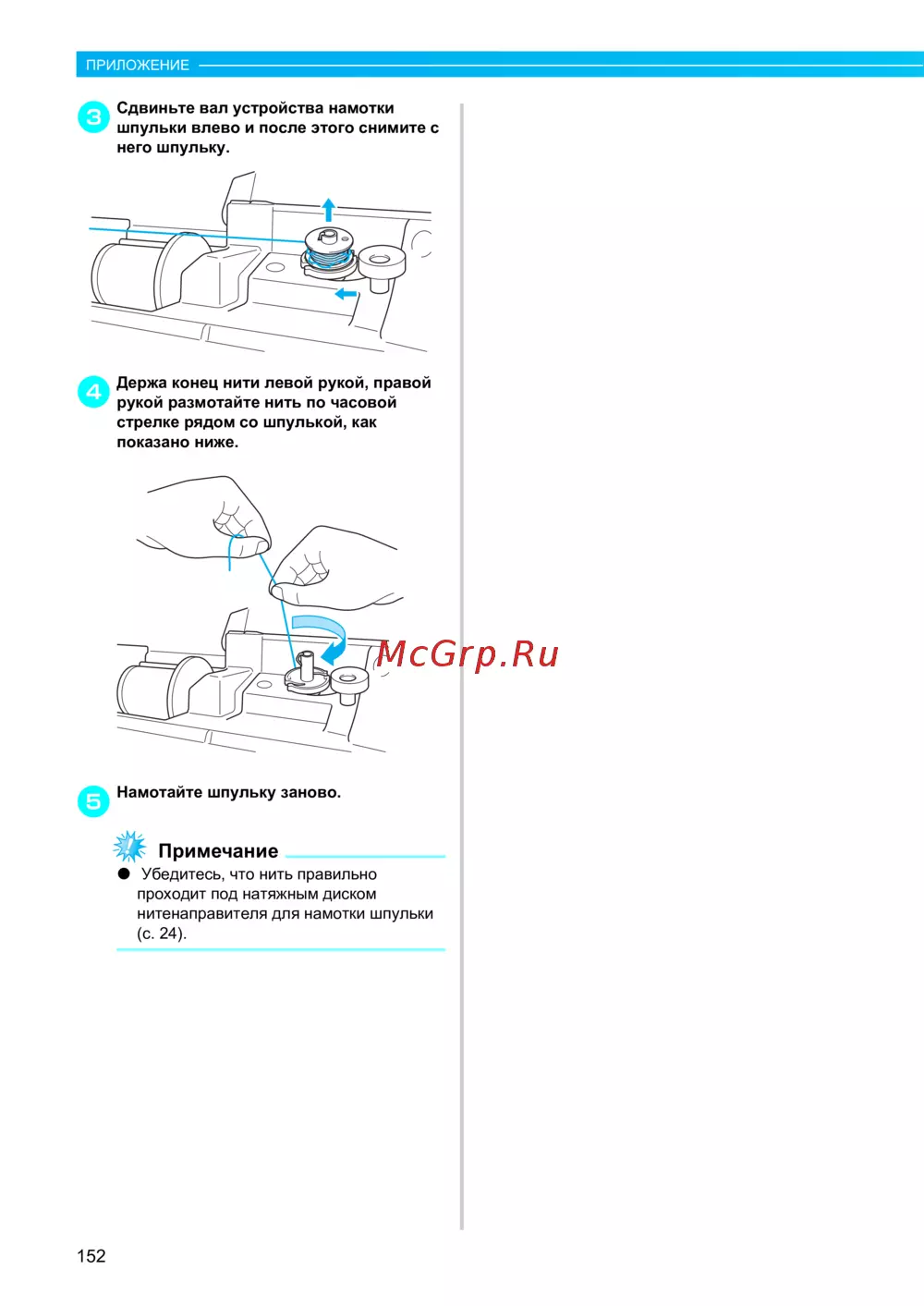 - Не снимайте седло устройства намотки шпульки даже если нить запуталась под ним это может привести к травме не выворачивайте винт прижима устройства намотки шпульки так как в противном случае возможно повреждение машины невозможно размотать нить вывернув винт p.153