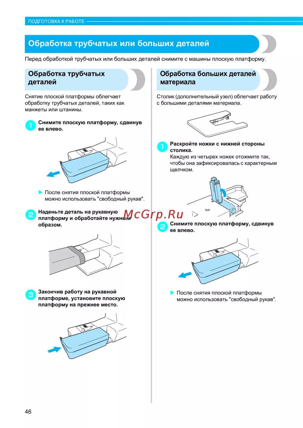 Узнайте, как правильно подготовить оборудование для обработки трубчатых и больших деталей. Пошаговые инструкции по снятию платформы и использованию рукавной платформы.