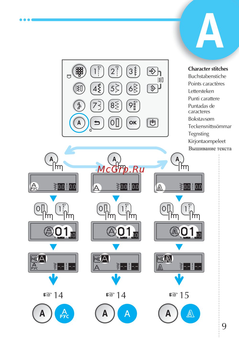 - Übersicht der stichmuster overzicht van steekpatronen resumen de patrones de costura översikt över mönster ompeleiden yhteenveto p.14