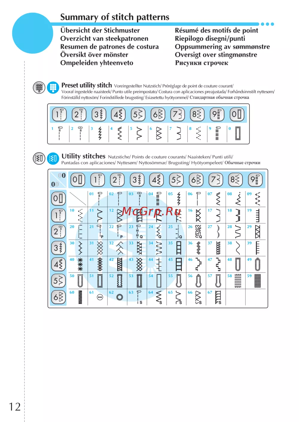 - Übersicht der stichmuster overzicht van steekpatronen resumen de patrones de costura översikt över mönster ompeleiden yhteenveto p.14