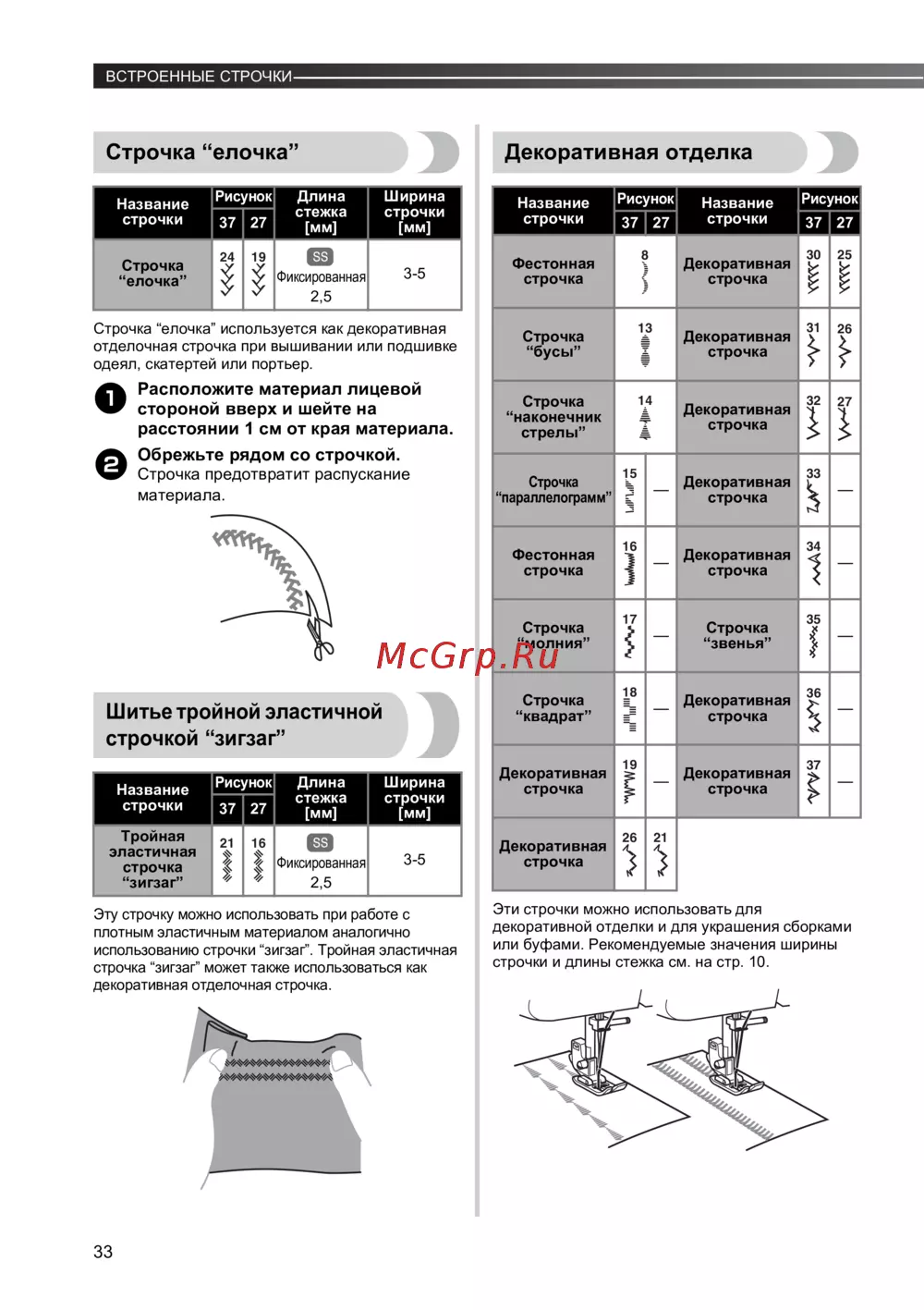 - Ш шитье тройной эластичной строчкой зигзаг p.47