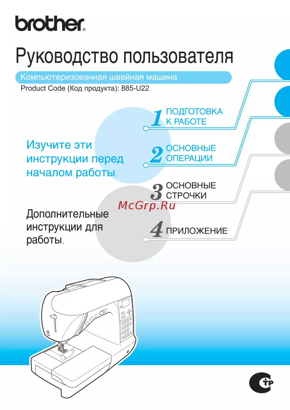 - Благодарим вас за покупку этой швейной машины перед началом эксплуатации швейной машины внимательно прочитайте раздел инструкции по технике безопасности с 1 а затем изучите настоящее руководство чтобы правильно использовать различные функции машины и выполнять различные операции храните руководство в легкодоступном месте чтобы при необходимости получить всю необходимую информацию p.9