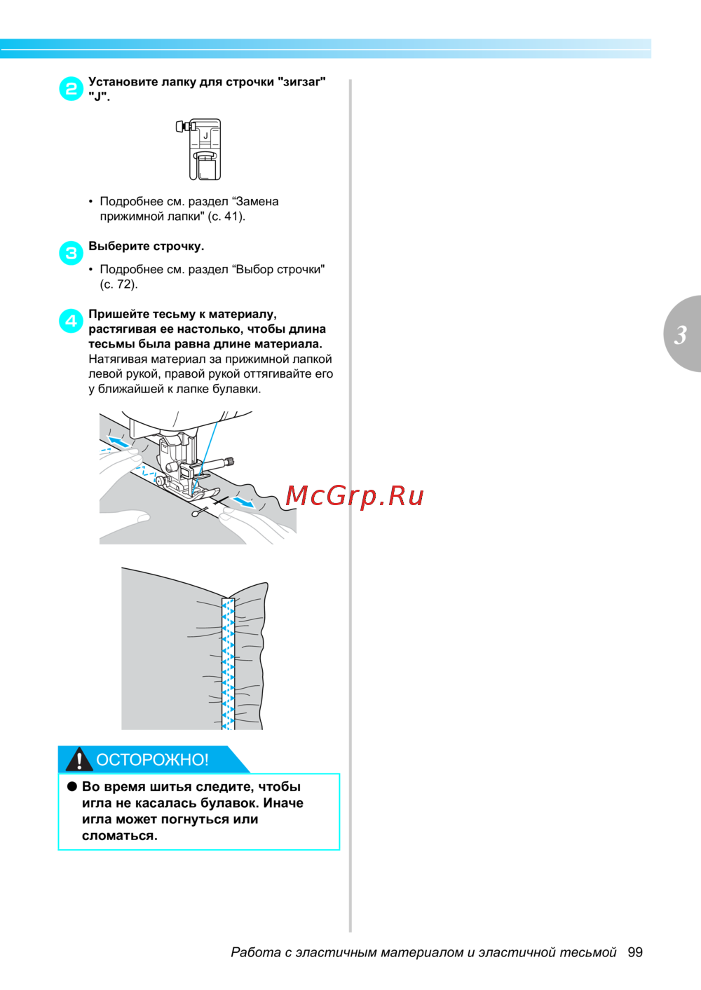 Brother INNOV-'IS NV-350 SE (SPECIAL EDITION) — работа с эластичными материалами и тесьмой: советы и рекомендации [101/168]