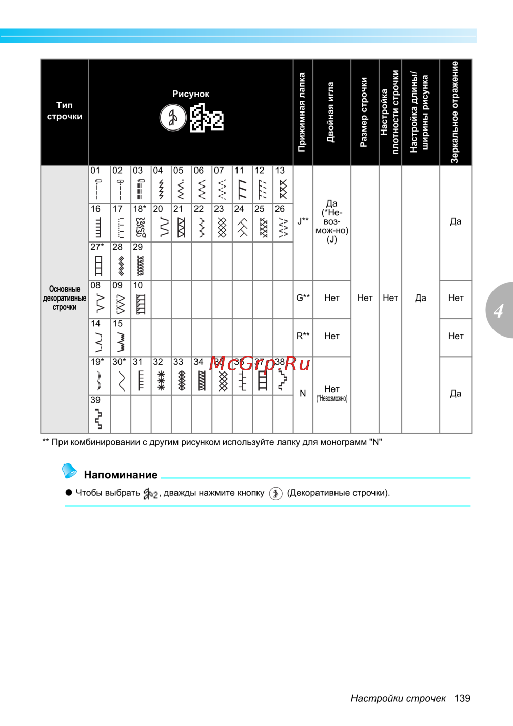 ![Brother INNOV-'IS NV-350 SE (SPECIAL EDITION) [141/168] Настройки строчек 139](/views2/1026194/page141/bg8d.png)