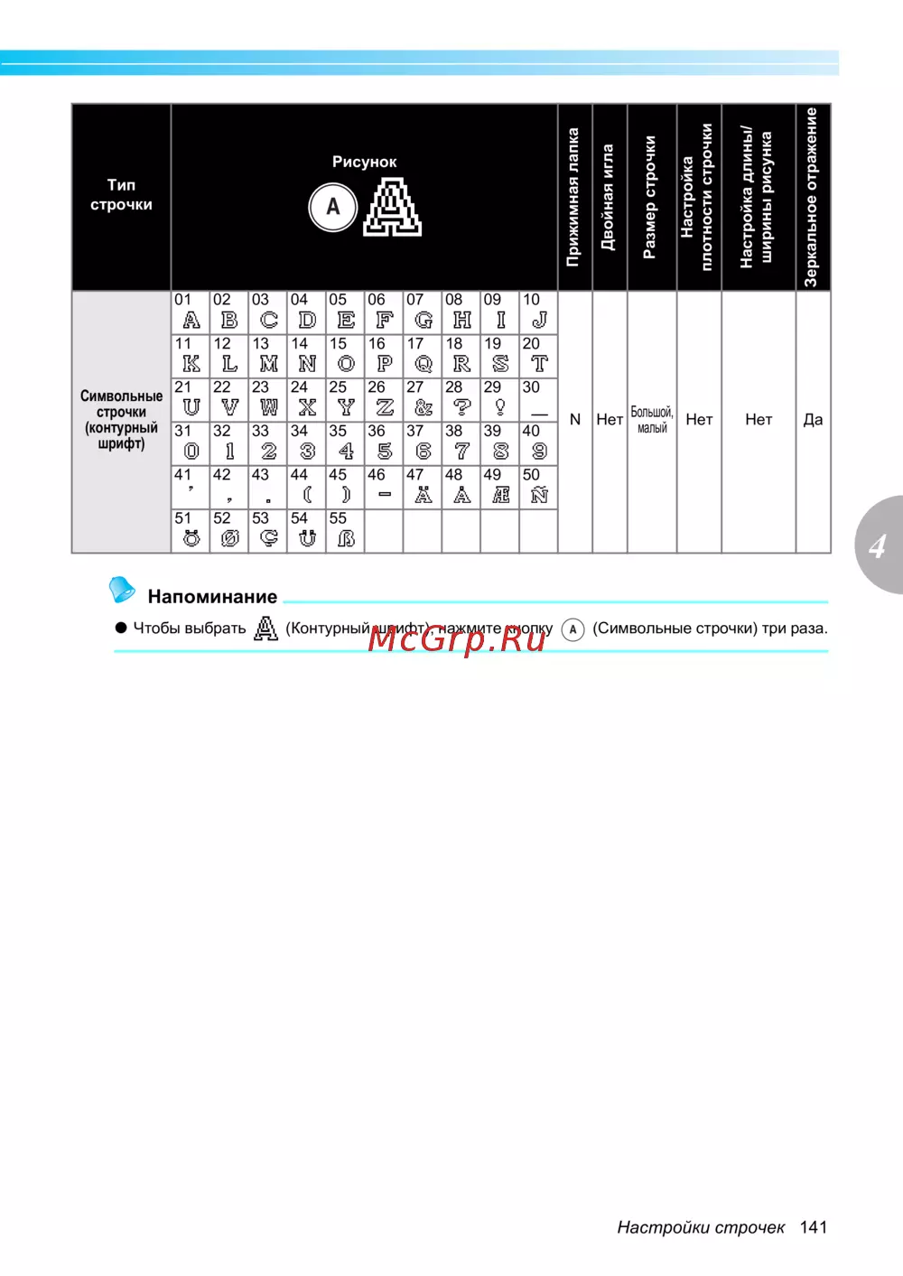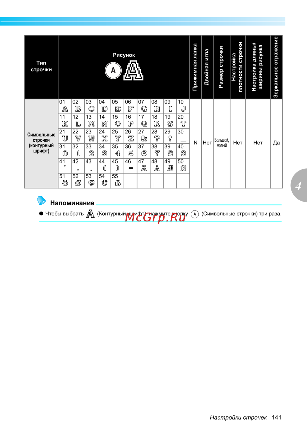 ![Brother INNOV-'IS NV-350 SE (SPECIAL EDITION) [143/168] Настройки строчек 141](/views2/1026194/page143/bg8f.png)