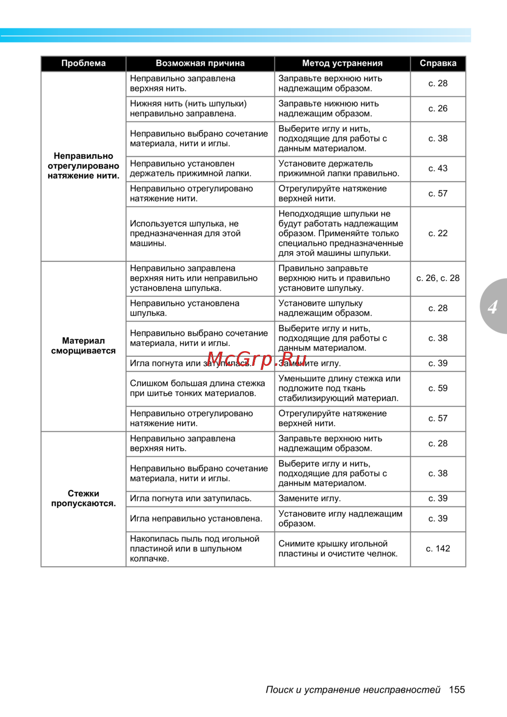 Brother INNOV-'IS NV-350 SE (SPECIAL EDITION) — поиск и устранение неисправностей швейных машин: советы и рекомендации [157/168]