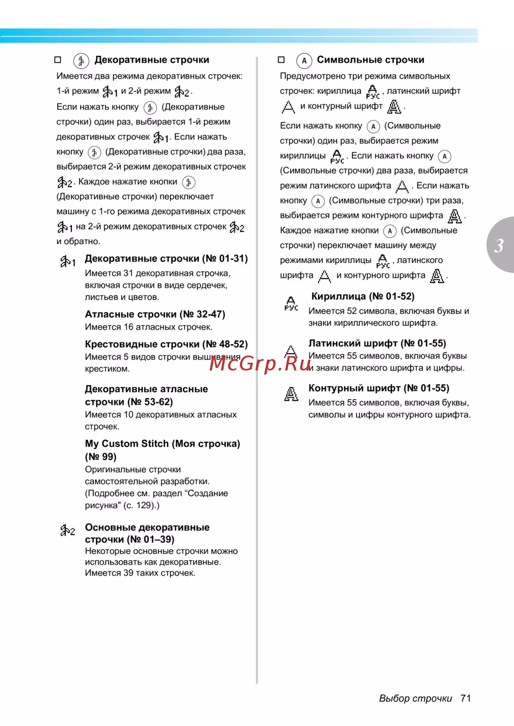 Brother INNOV-'IS NV-350 SE (SPECIAL EDITION) — обзор декоративных и символьных строчек для швейных машин [73/168]