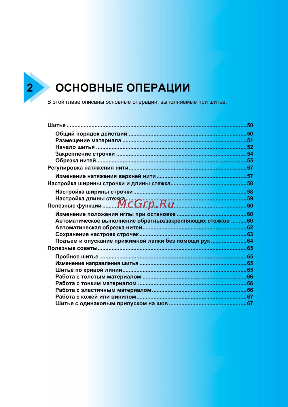 Настройка длины стежка..............................................................................59