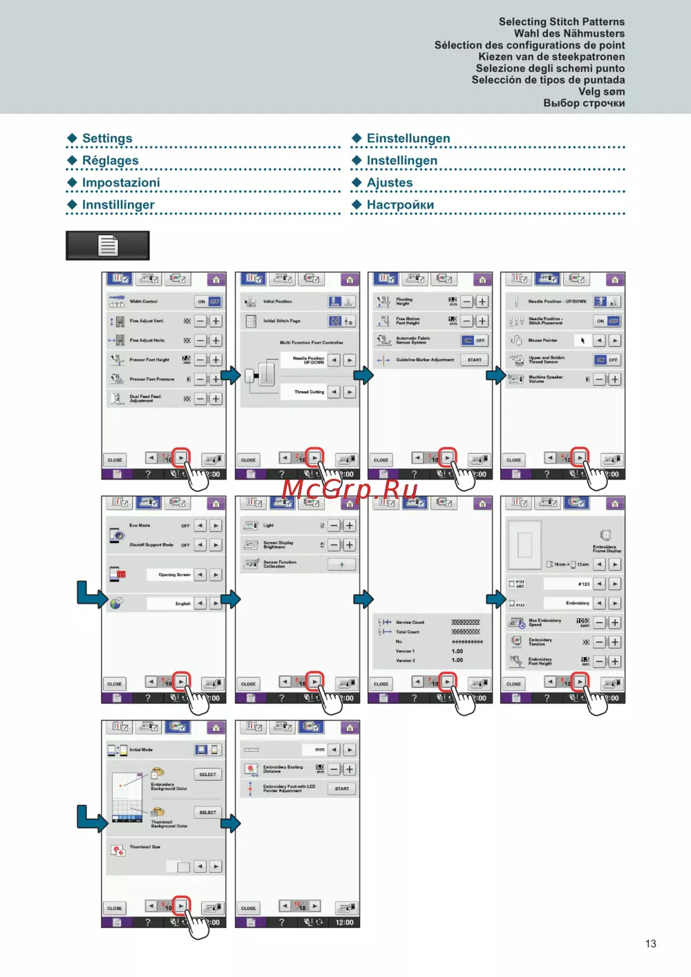 - Einzelheiten entnehmen sie bitte der bedienungsanleitung je nachdem welche sprache für die bildschirmanzeigen gewählt wurde ergeben sich im hinblick auf bildschirmbilder eventuell unterschiede die grundlegende bedienung der maschine ist in dieser anleitung am beispiel von bildschirmbildern mit englischem text erklärt p.2