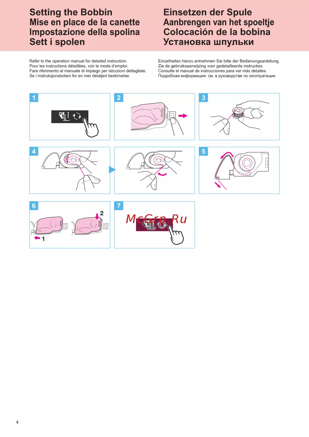 Brother INNOV-IS NV-V5 — инструкции по установке шпульки и эксплуатации устройства [6/64]