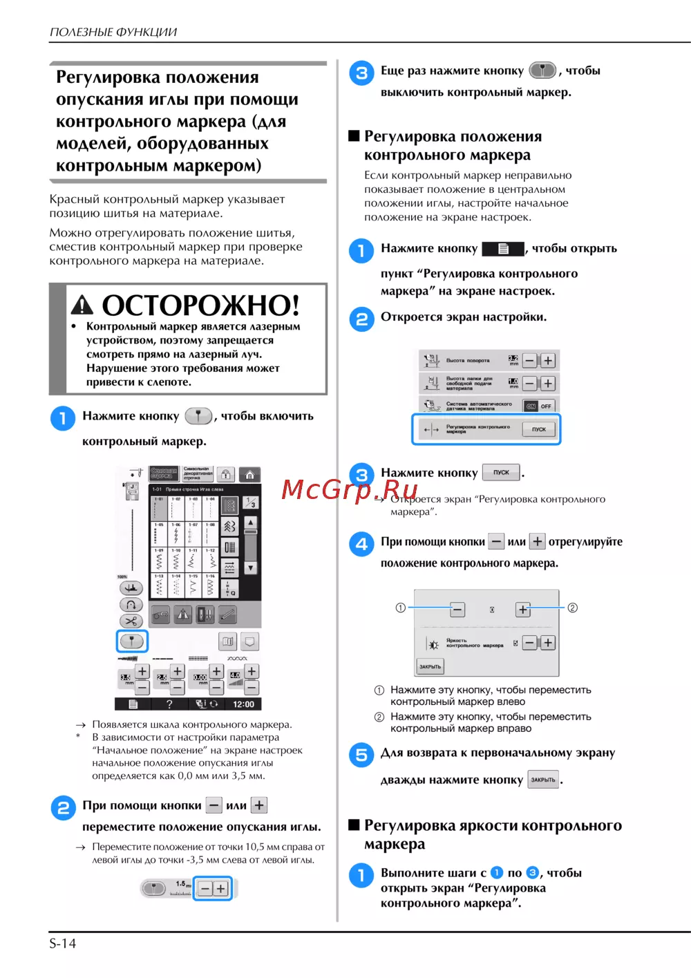 - Настройка лазерного контрольного маркера для контроля шитья p.9