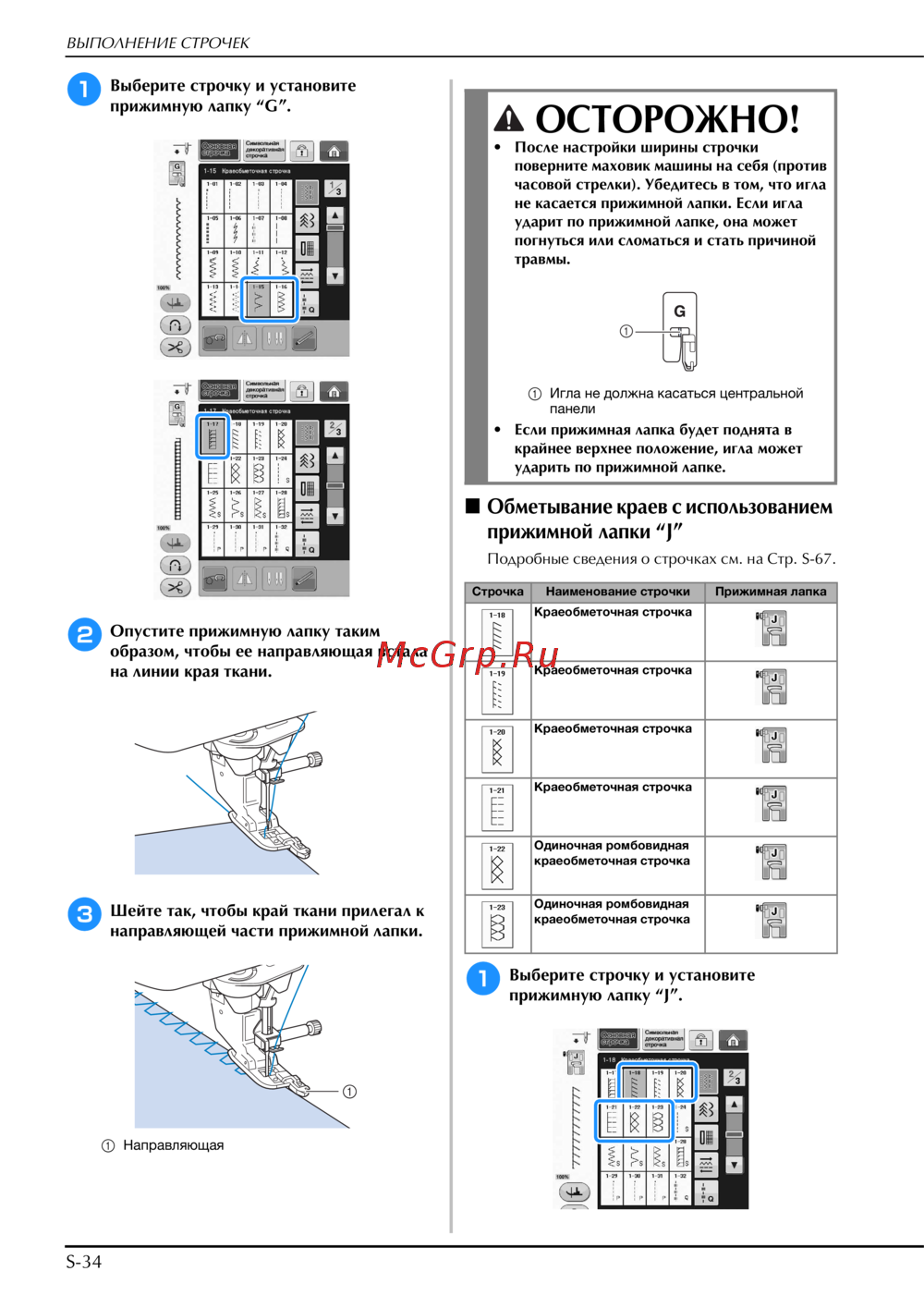 прижимную лапку “G”.