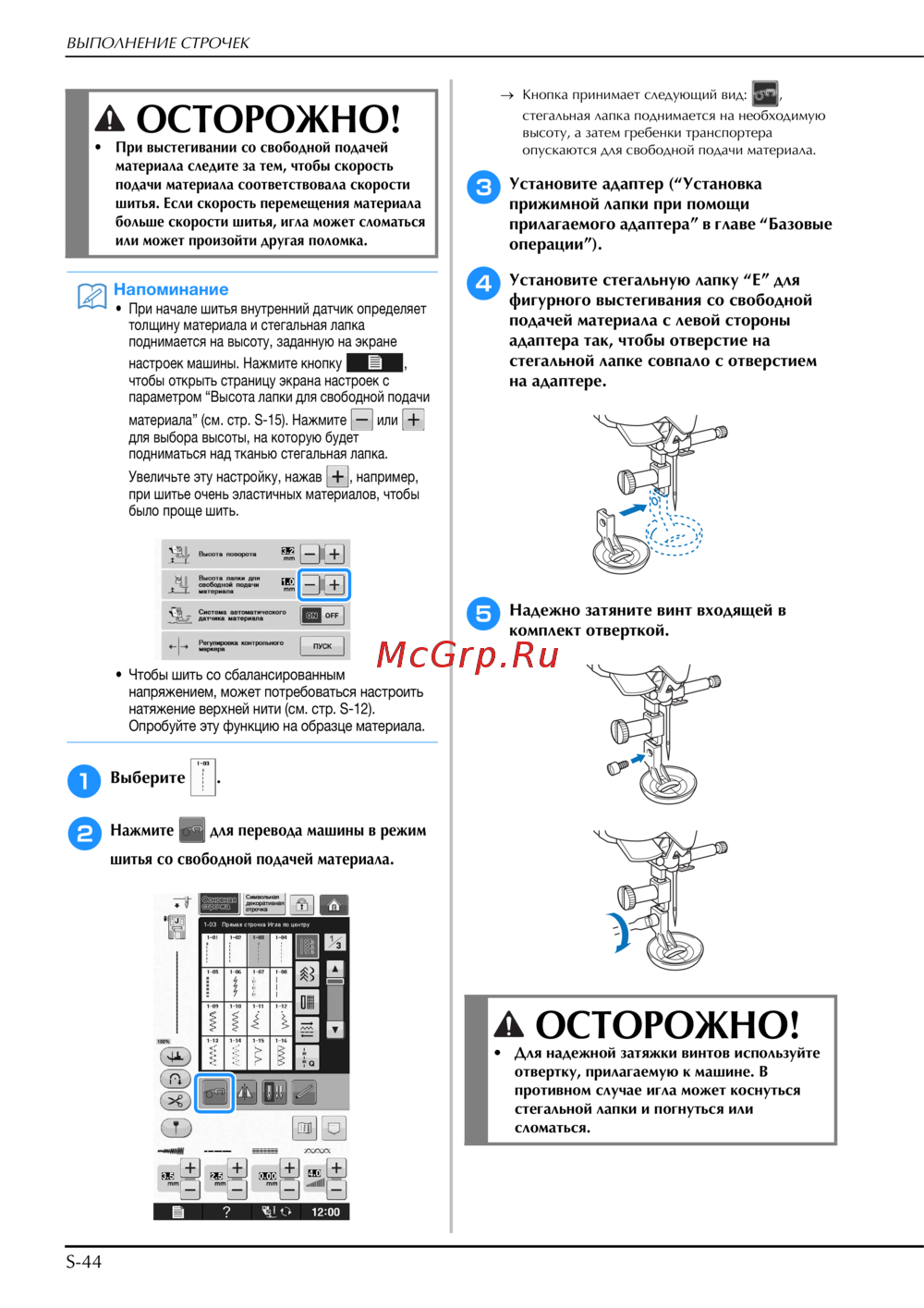 Узнайте, как правильно установить стегальную лапку и настроить швейную машину для выполнения строчек с свободной подачей материала. Следуйте рекомендациям для безопасного шитья.