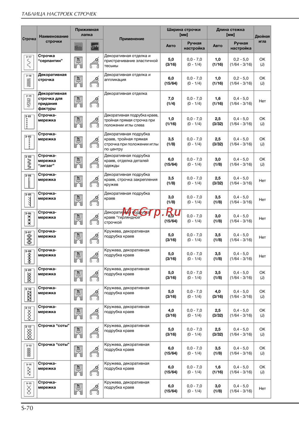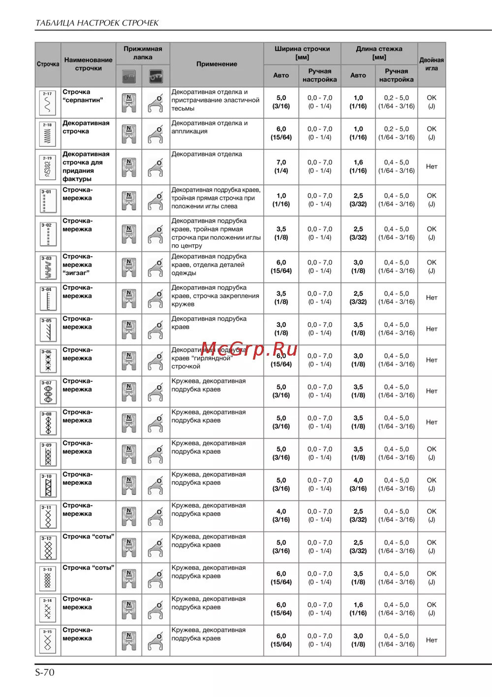 Brother INNOV-IS NV-V7 [158/332] Таблица настроек строчек