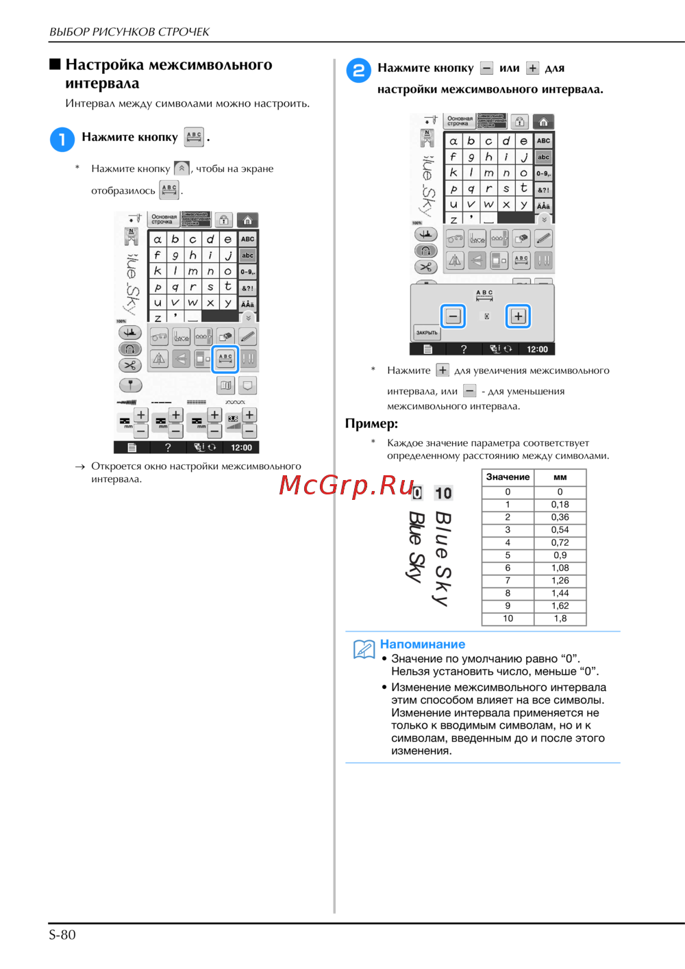 настройки межсимвольного интервала.