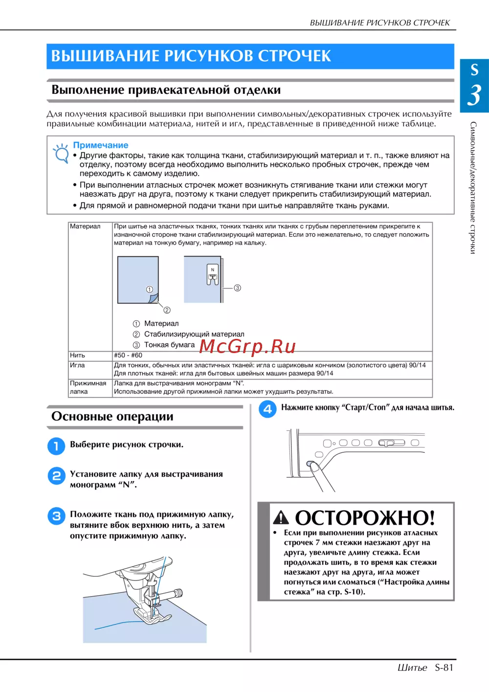 отделку, поэтому всегда необходимо выполнить несколько пробных строчек, прежде чем