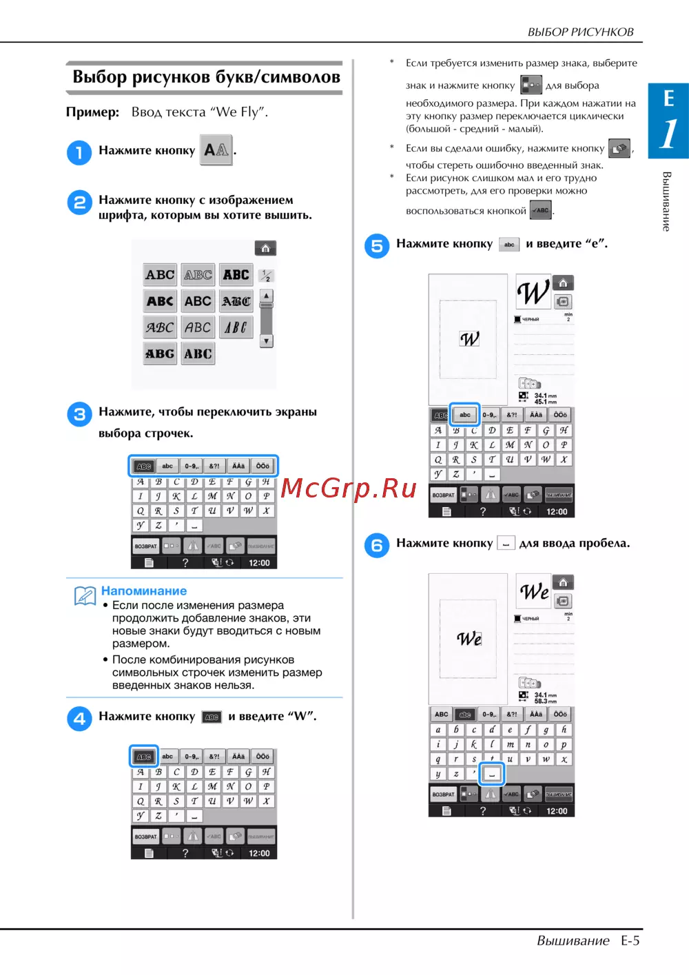 ![Brother INNOV-IS NV-V7 [205/332] Пример ввод текста we fly](/views2/1315416/page205/bgcd.png)