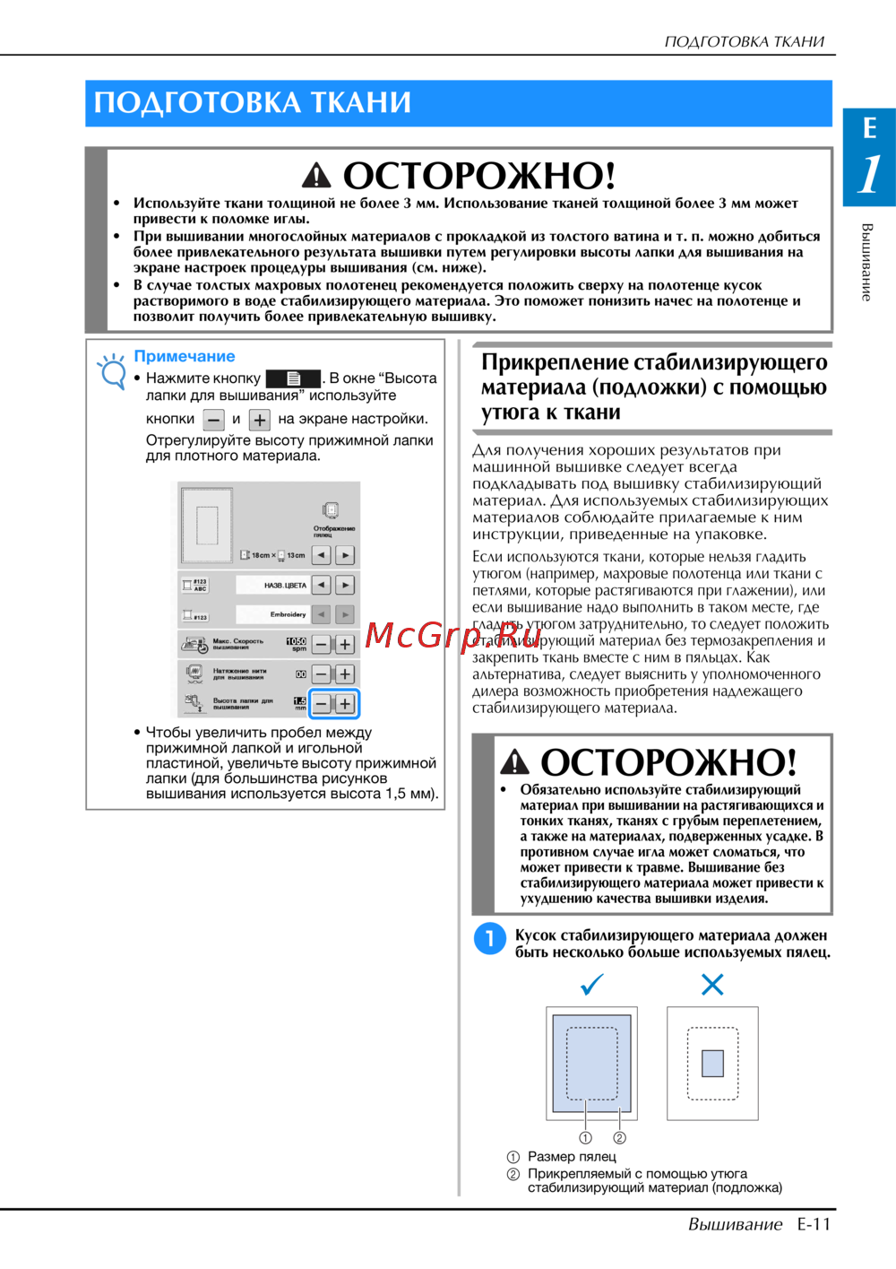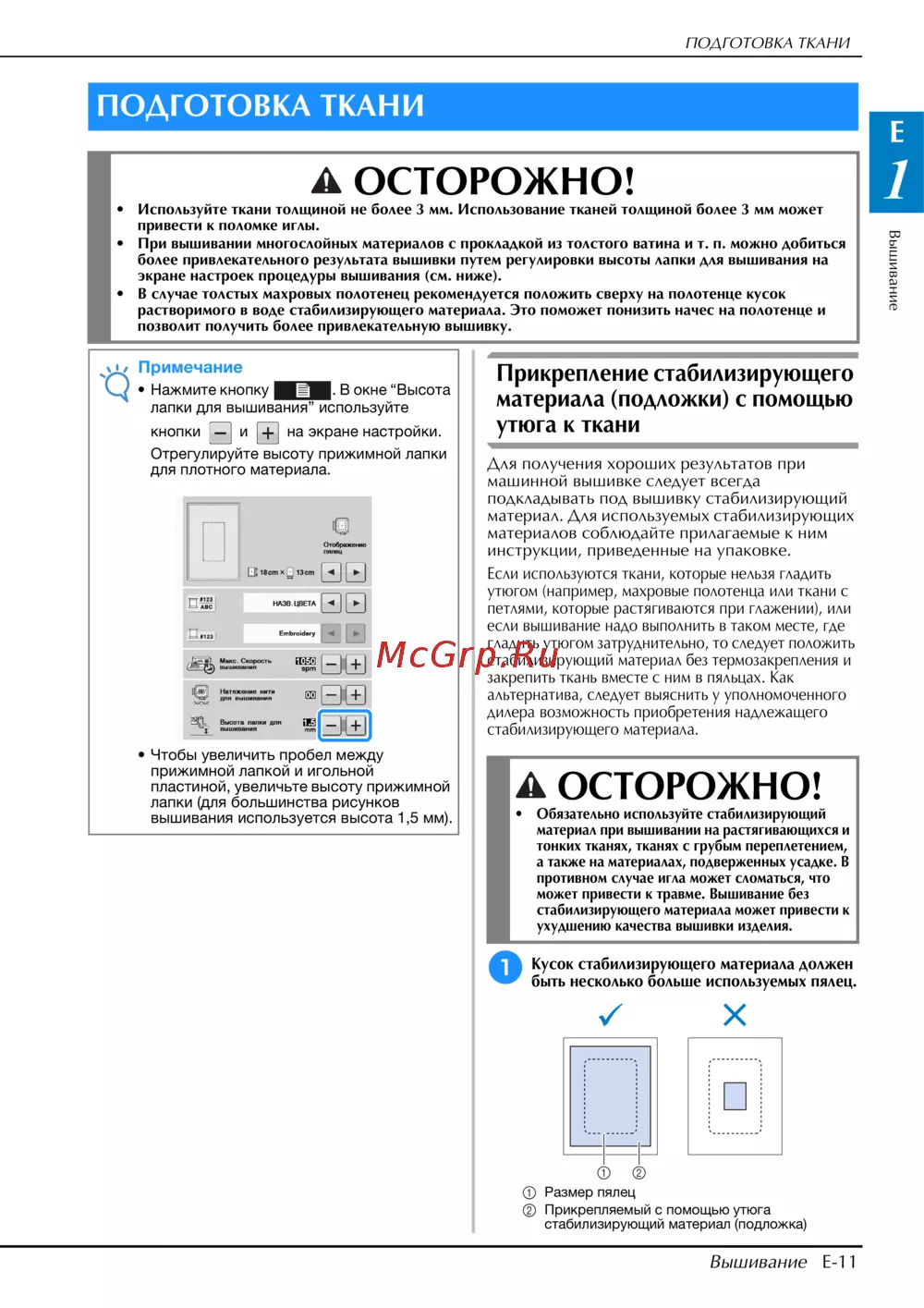 Brother INNOV-IS NV-V7 — подготовка ткани для машинной вышивки: советы и рекомендации [211/332]