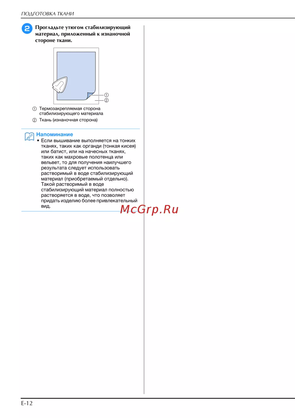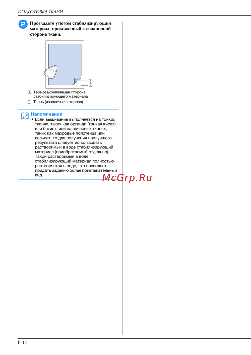 Brother INNOV-IS NV-V7 — советы по подготовке ткани для вышивания и стабилизации [212/332]