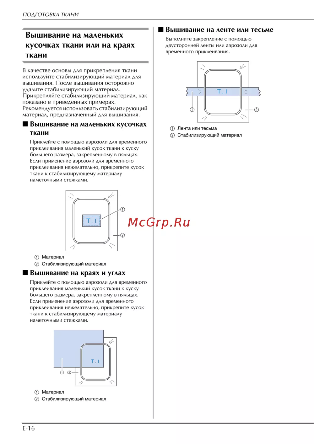 Brother INNOV-IS NV-V7 — техника вышивания на маленьких кусочках ткани и краях [216/332]
