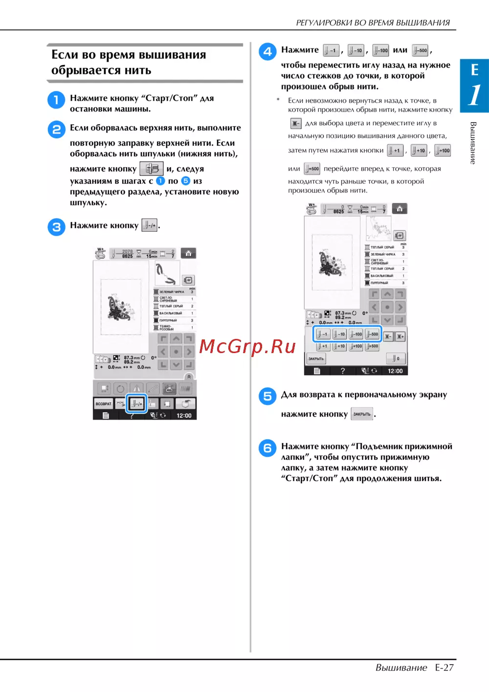 Brother INNOV-IS NV-V7 — регулировка вышивания: что делать при обрыве нити [227/332]