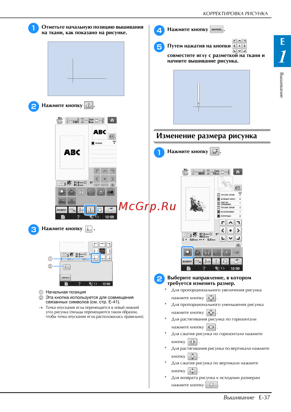 - Использование сенсорных функций в режиме вышивание и редактирование вышивки 83 p.11