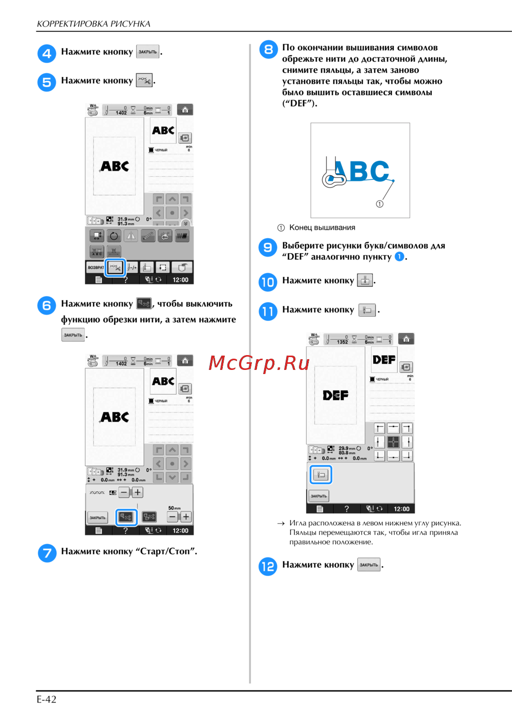 - Просмотр данных на экране вышивания 9 подготовка ткани 11 p.12