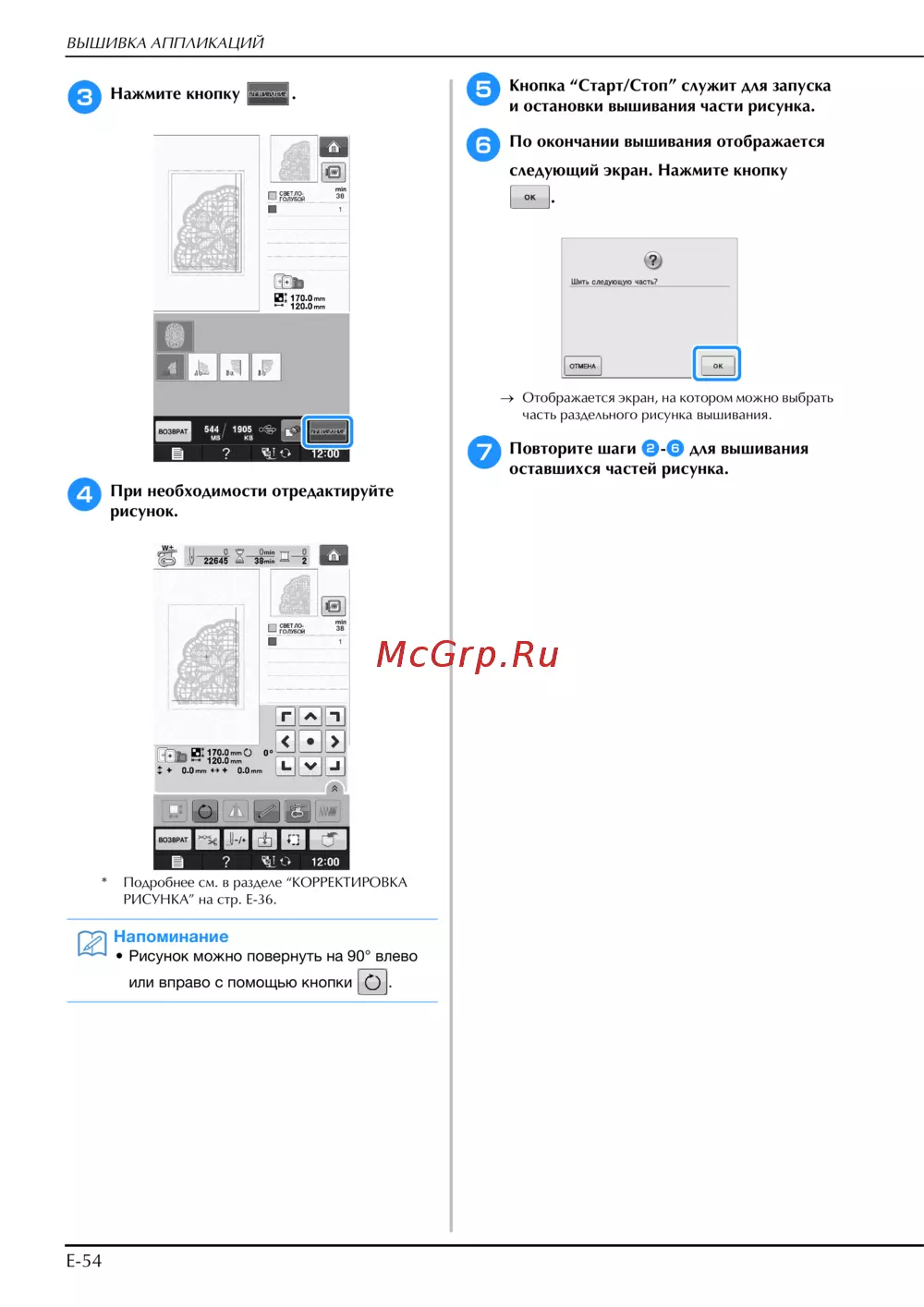 - Использование сенсорных функций в режиме вышивание и редактирование вышивки 83 p.11