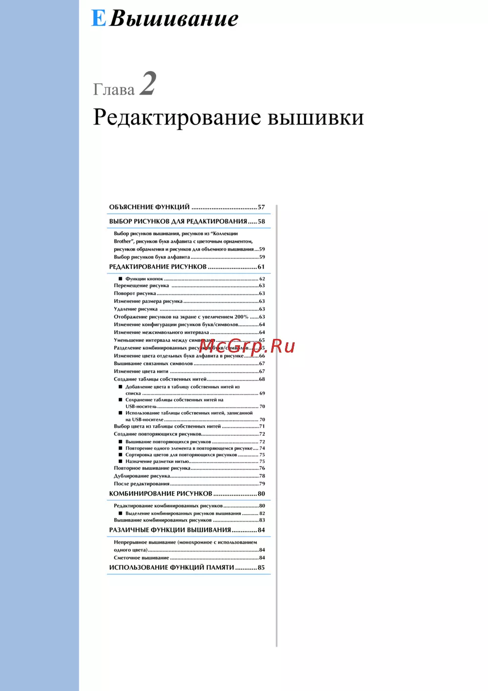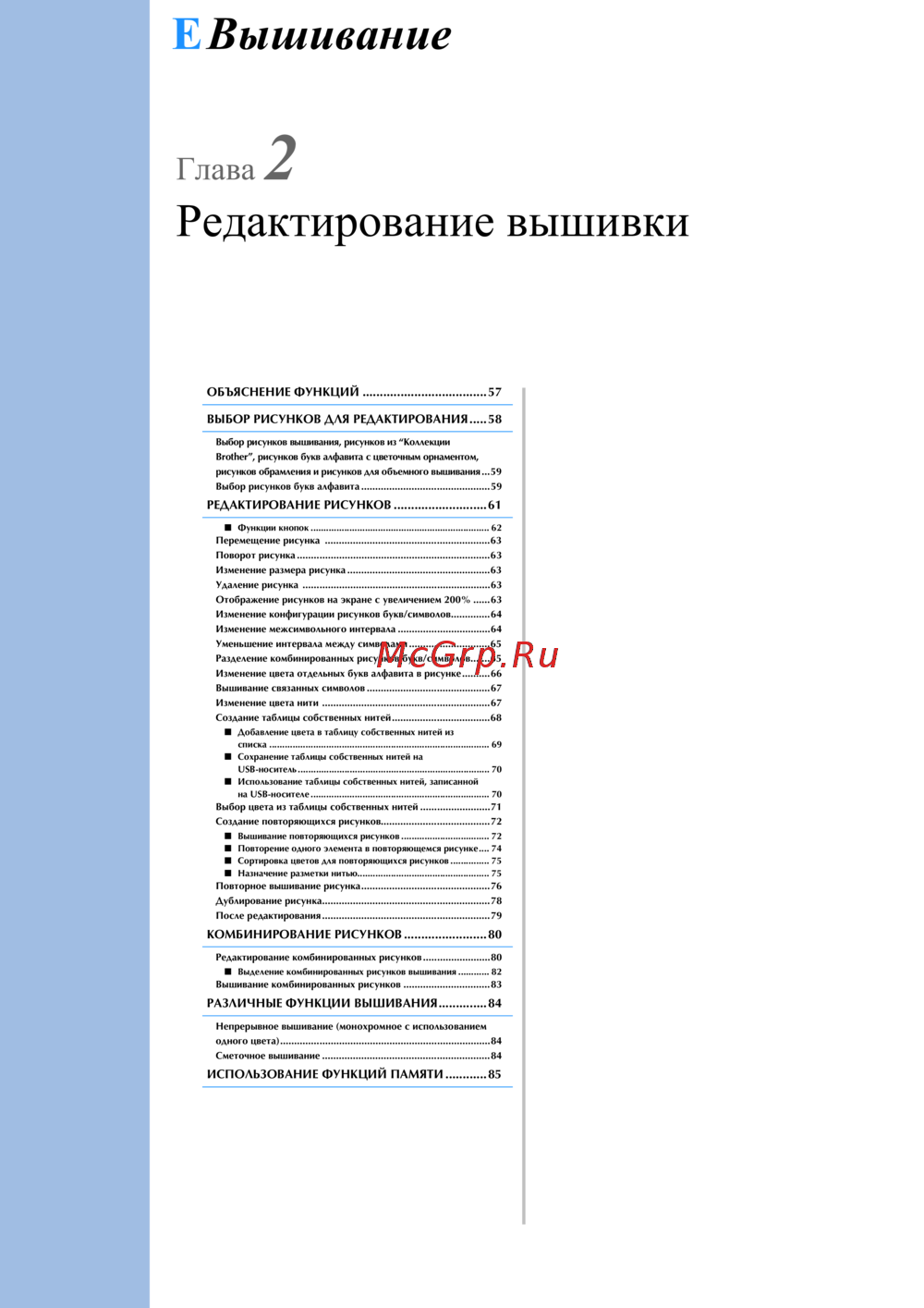 РАЗЛИЧНЫЕ ФУНКЦИИ ВЫШИВАНИЯ..............84