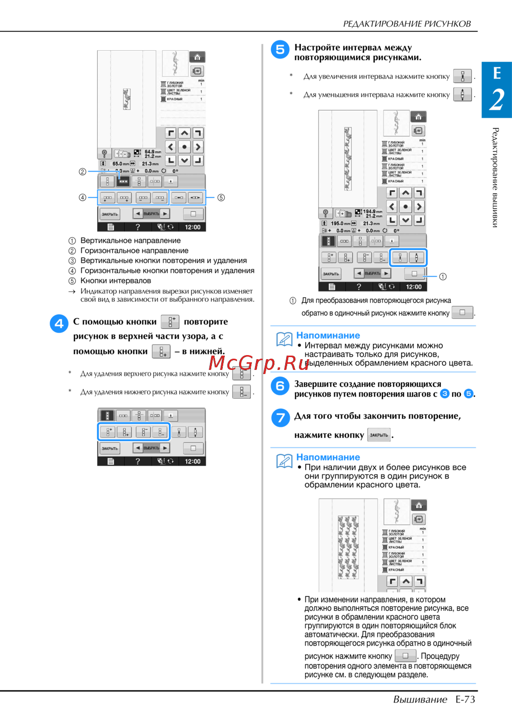Узнайте, как редактировать рисунки и вышивку с помощью простых шагов. Настройте интервалы, повторяйте и удаляйте элементы для создания уникальных узоров.