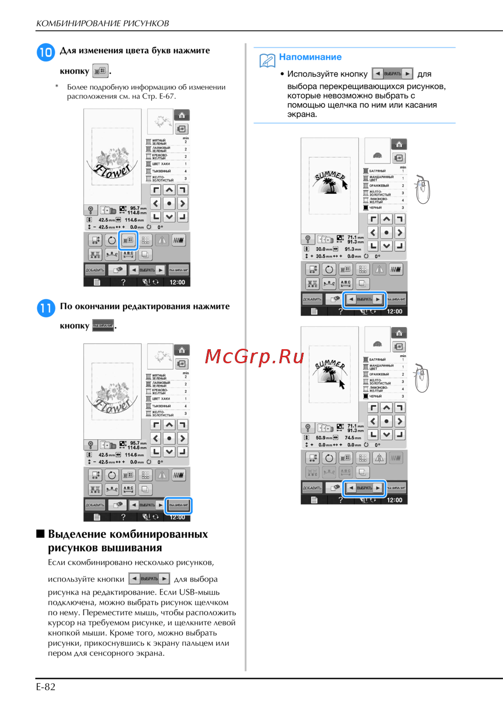 - Использование сенсорных функций в режиме вышивание и редактирование вышивки 83 p.11