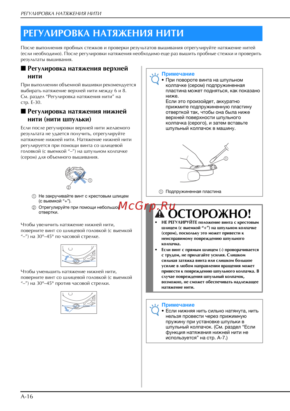 - Верхняя нить натянута а результаты не меняются даже после регулировки натяжения нити p.309
