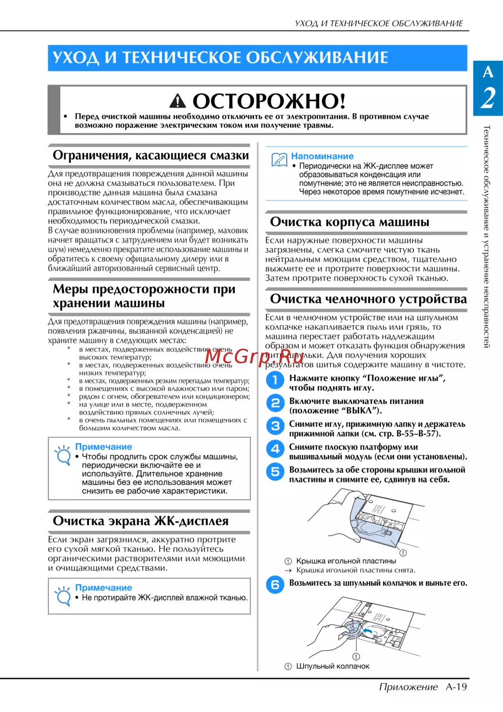 Brother INNOV-IS NV-V7 — уход и техническое обслуживание: советы по эксплуатации машины [305/332]