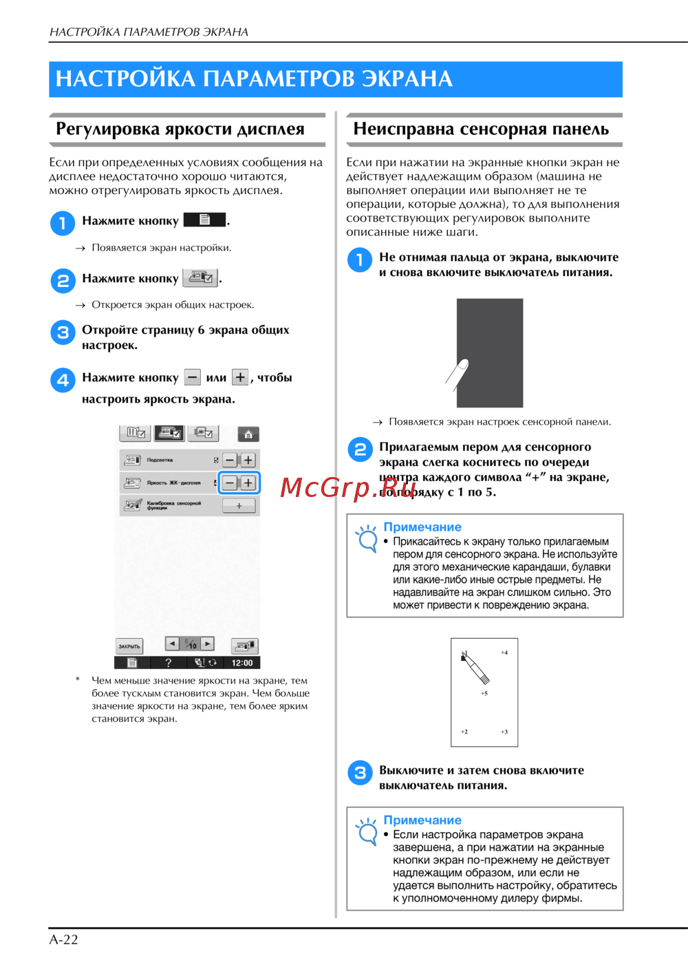 Brother INNOV-IS NV-V7 — настройка параметров экрана: яркость и сенсорная панель [308/332]