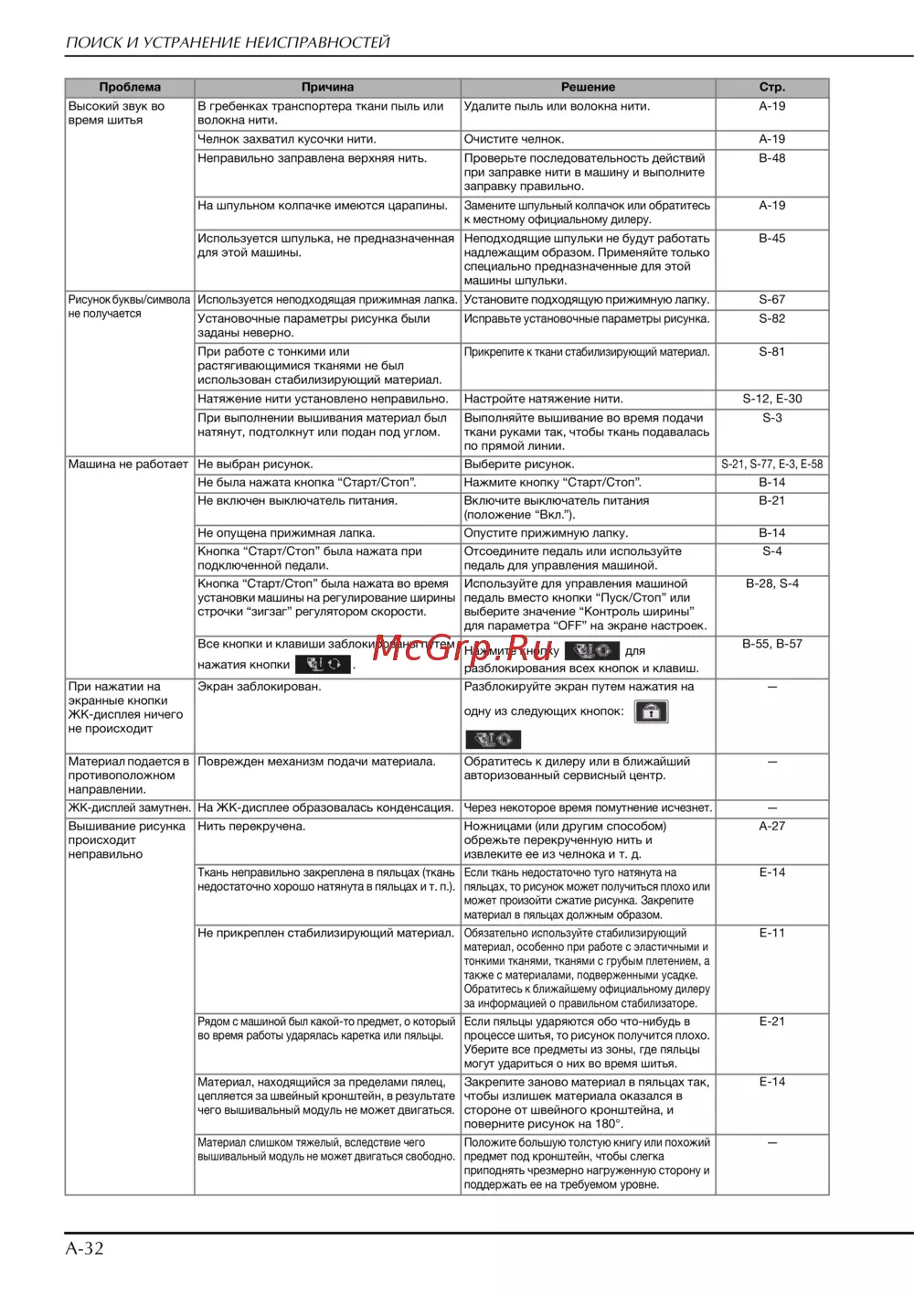 Brother INNOV-IS NV-V7 — поиск и устранение неисправностей швейной машины [318/332]