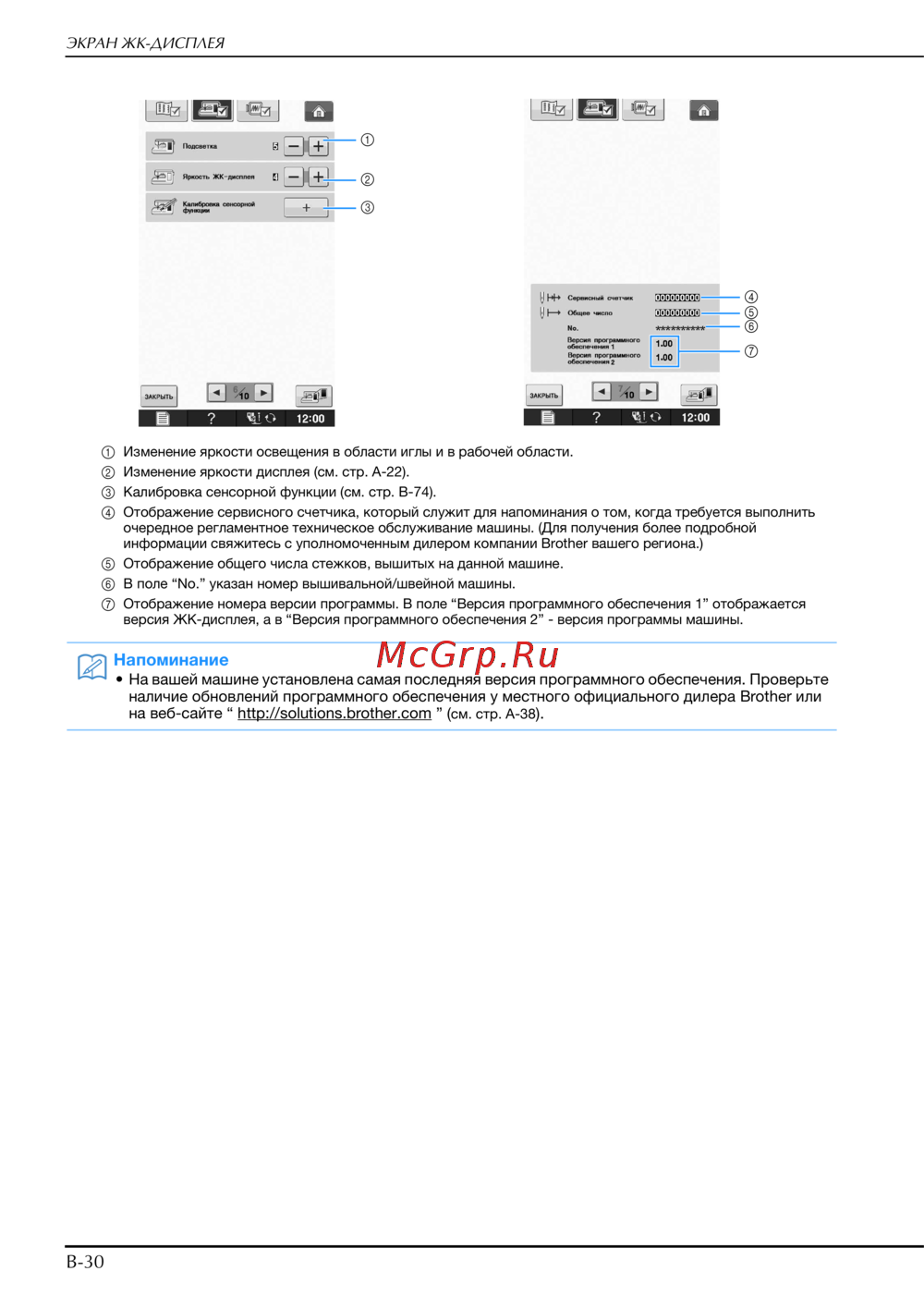 Brother INNOV-IS NV-V7 — настройка ЖК-дисплея: яркость, калибровка и обслуживание [32/332]