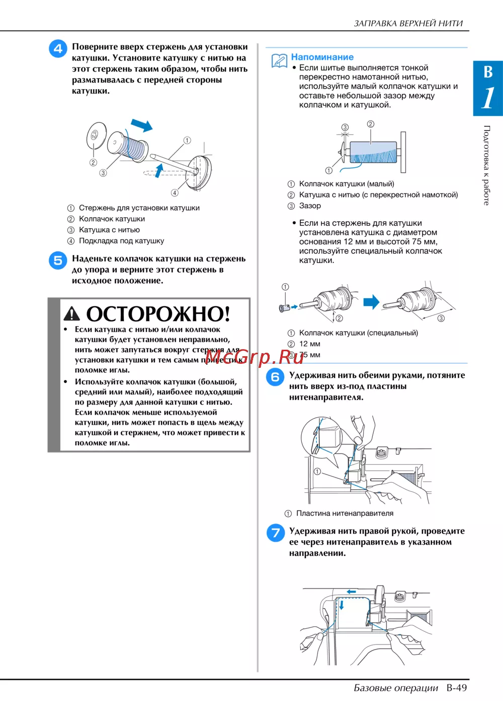 - Вытащите запутавшуюся нить если она не вытаскивается обрежьте нить ножницами p.310