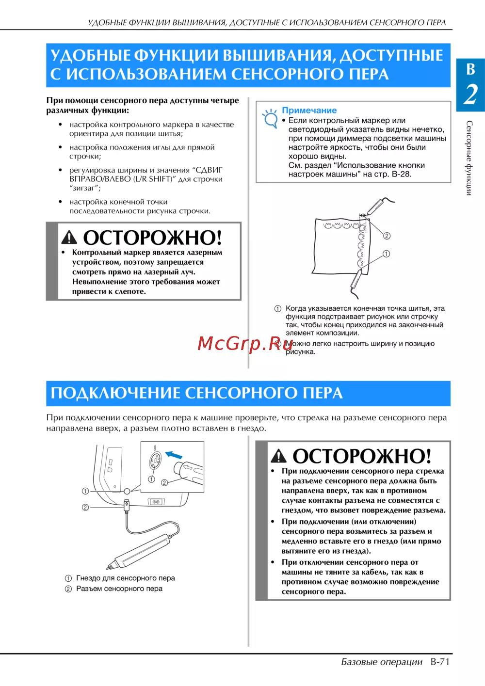 ![Brother INNOV-IS NV-V7 [73/332] Подключение сенсорного пера](/views2/1315416/page73/bg49.png)