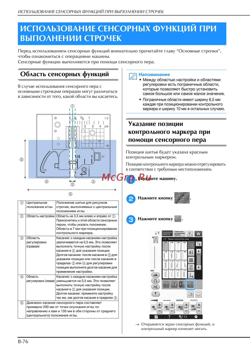 Перед использованием сенсорных функций внимательно прочитайте главу “Основные строчки”,