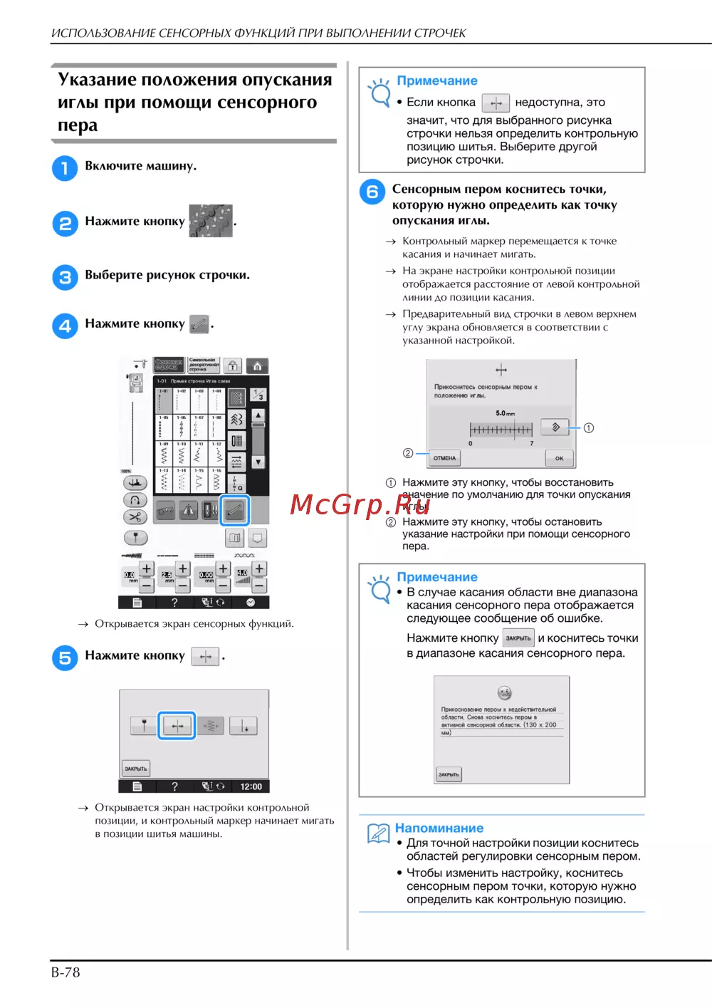 Brother INNOV-IS NV-V7 — использование сенсорных функций для настройки швейных машин [80/332]