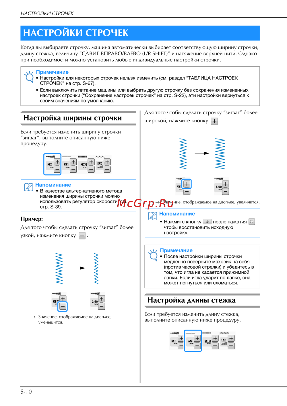 длину стежка, величину “СДВИГ ВПРАВО/ВЛЕВО (L/R SHIFT)” и натяжение верхней нити. Однако