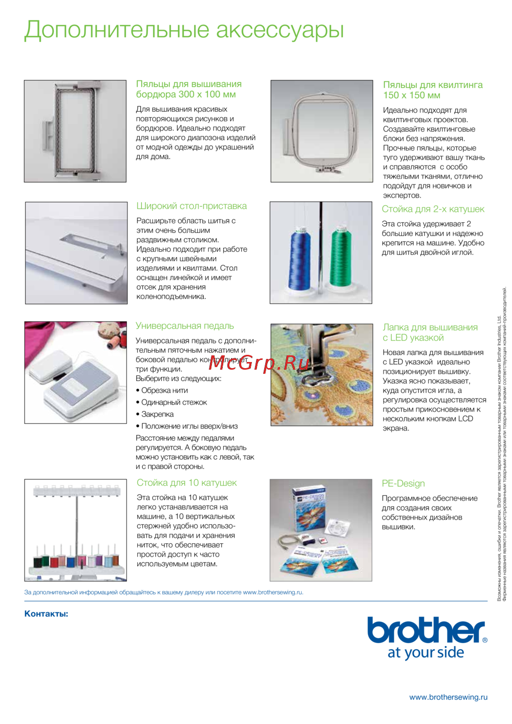 Задополнительнойинформациейобращайтеськвашемудилеруилипосетитеwww.brothersewing.ru.