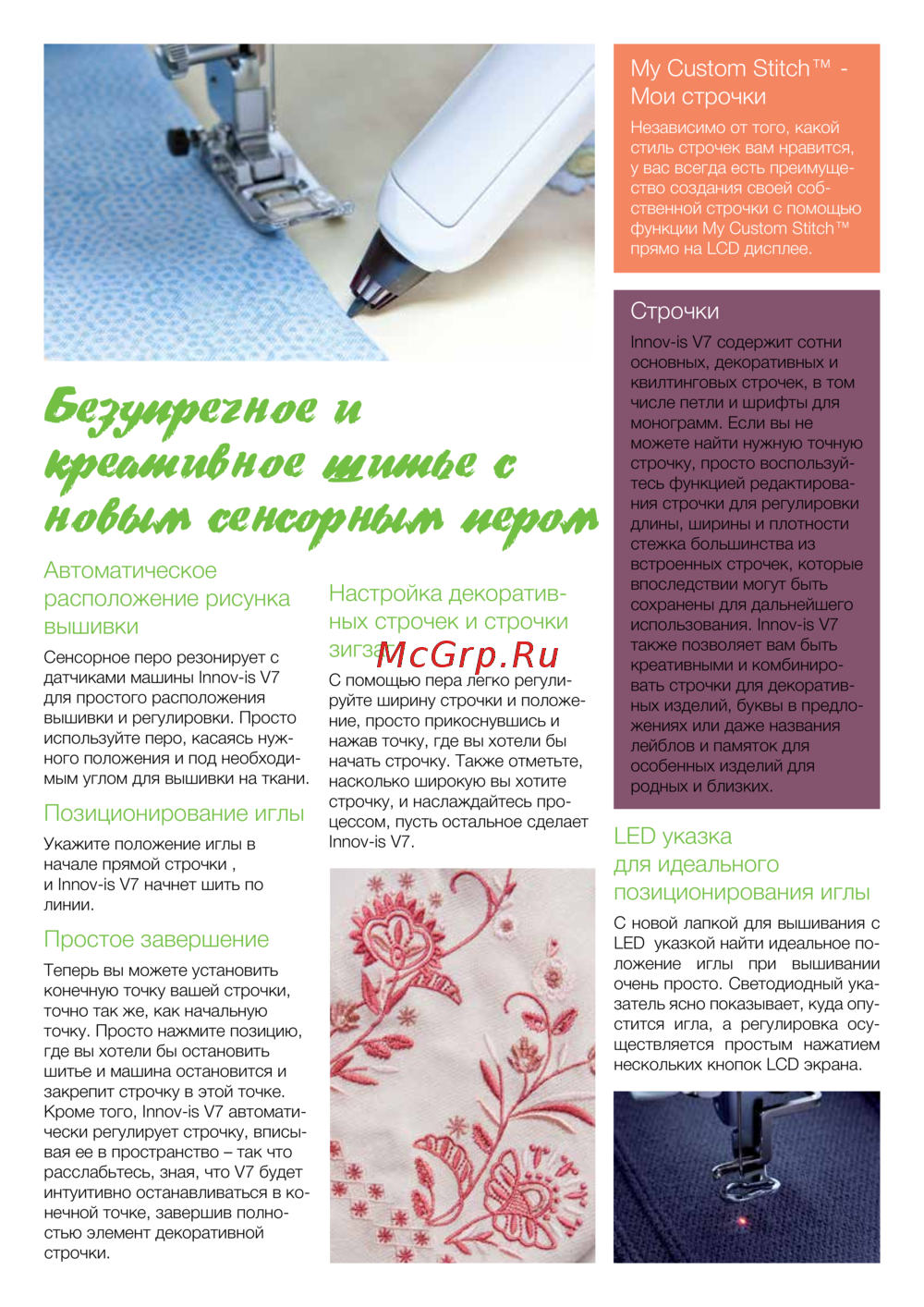 - Представляемновуюшвейно вышивальнуюмашинудля квилтингаinnov isv7сновой увеличеннойрабочейобластью длядостиженияпостоянных профессиональныхрезультатов p.3